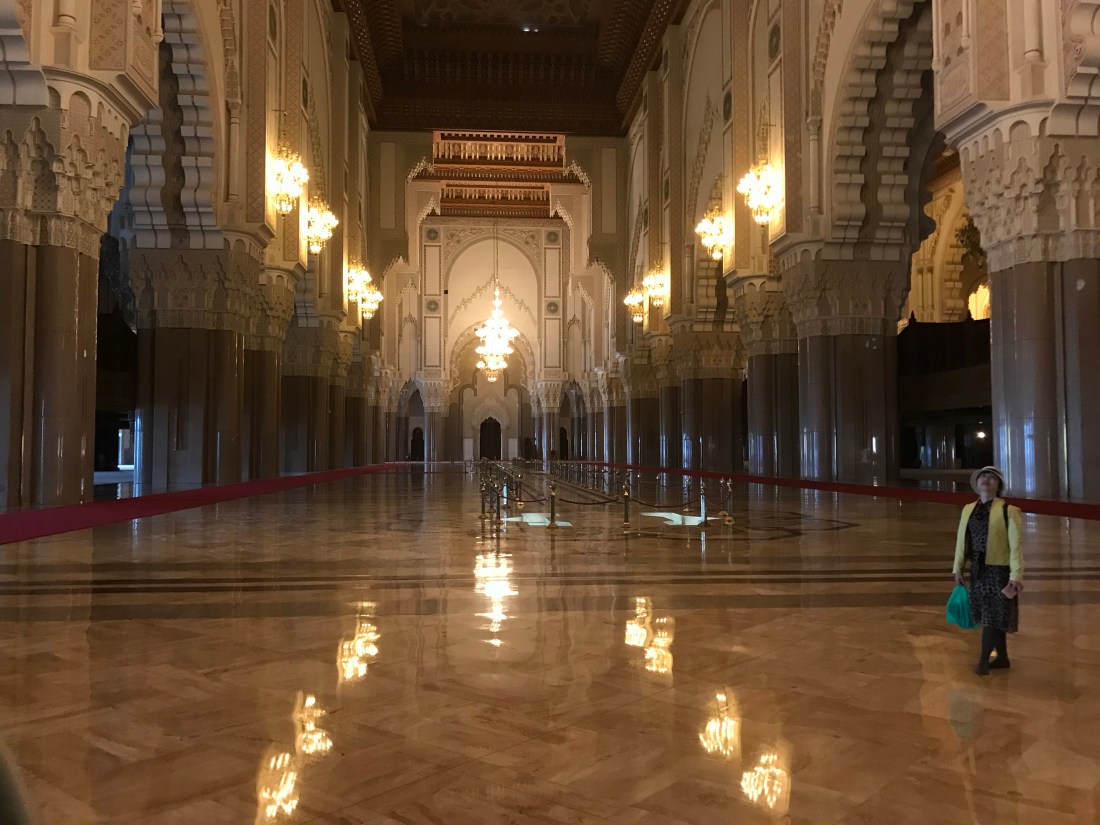 The highlight of our last day in Casablanca was the tour of the Hassan II Mosque. It is the largest Mosque in Africa, 5th largest in the world. The minaret is the tallest at 210 meters. It is the only mosque in the world that allows non-Muslims to enter. Not required, but out of respect, our female travelers covered their heads while in the mosque.