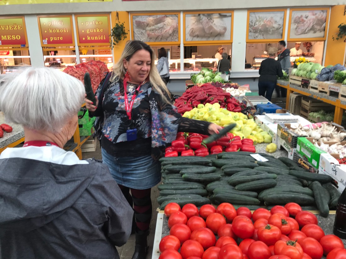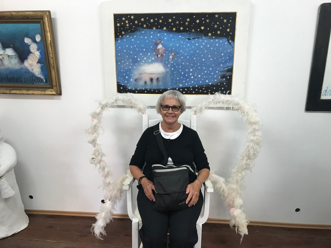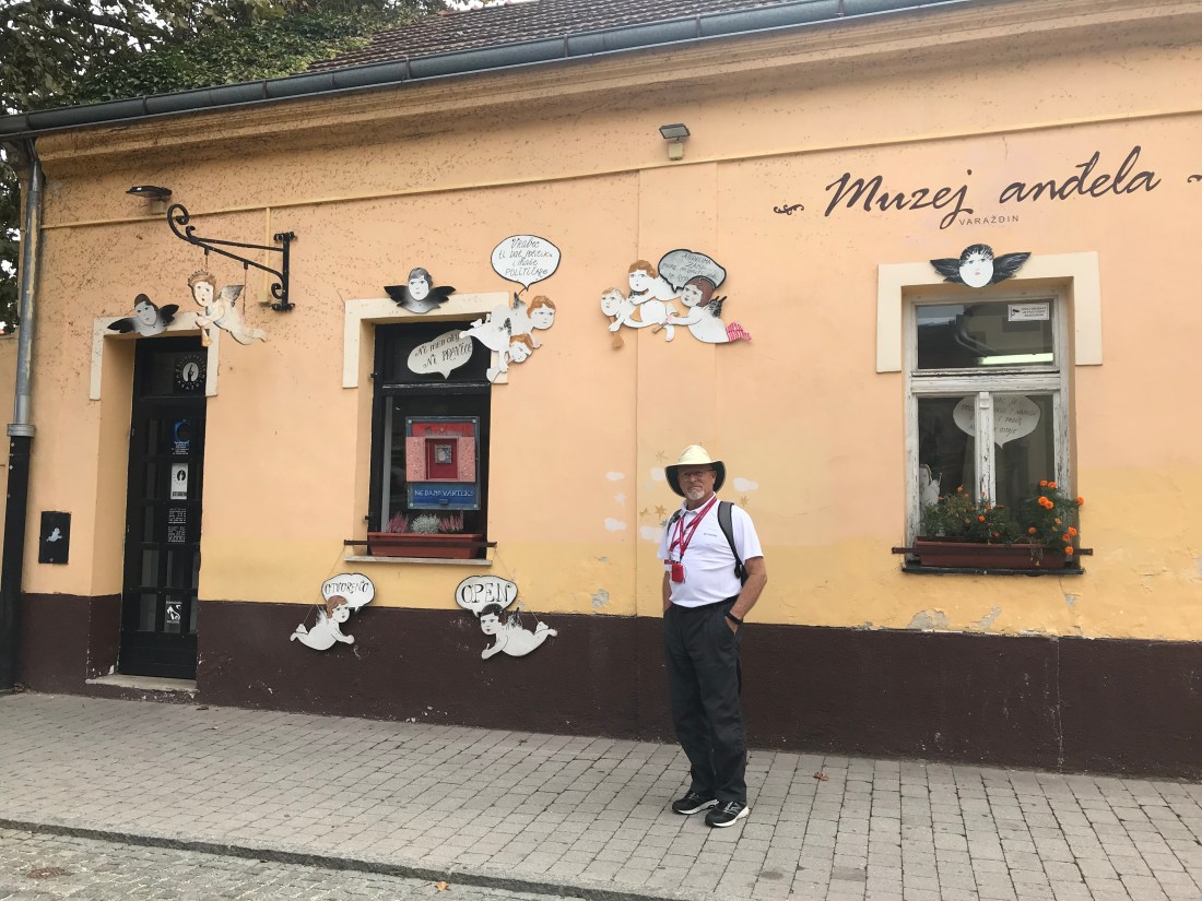We took a bus ride into the countryside about one hour to the city of Varazdin. A quiet beautiful city with a nice outdoor market, old castle, an angel museum(can’t hurt to hang out with angels), and wonderful vineyards. This area was settled in the 6th century. It is much different than Zagreb, the unemployment is less than 1%(hard to imagine, fake news??), more bicycles than any other town in Croatia, and a great restaurant at the vineyard that we visited.
