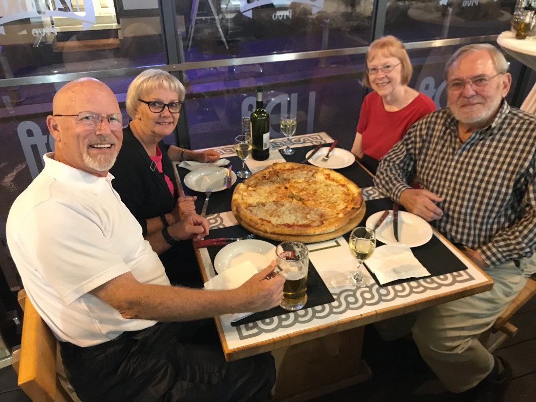 Then it was off to Croatia! We’re now in Zagreb for three nights. We did an orientation walk with our trip leader then found an outdoor restaurant for pizza, beer and wine.