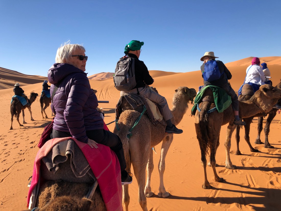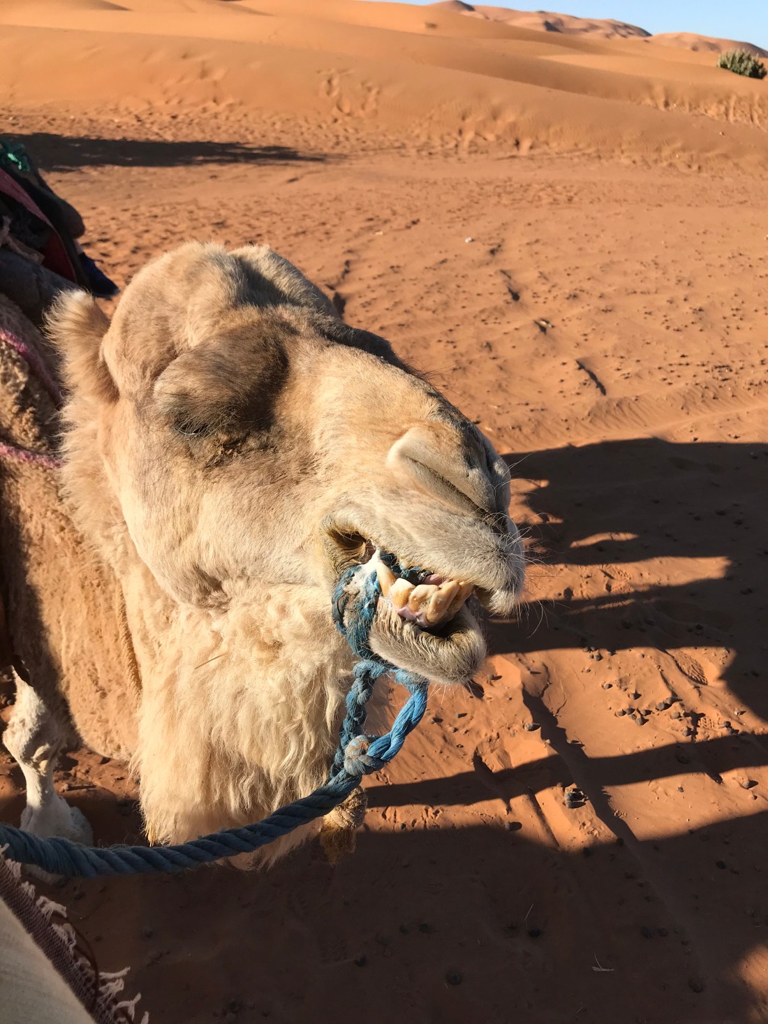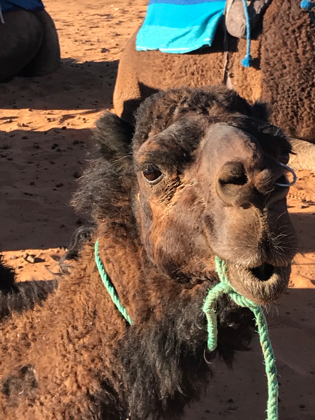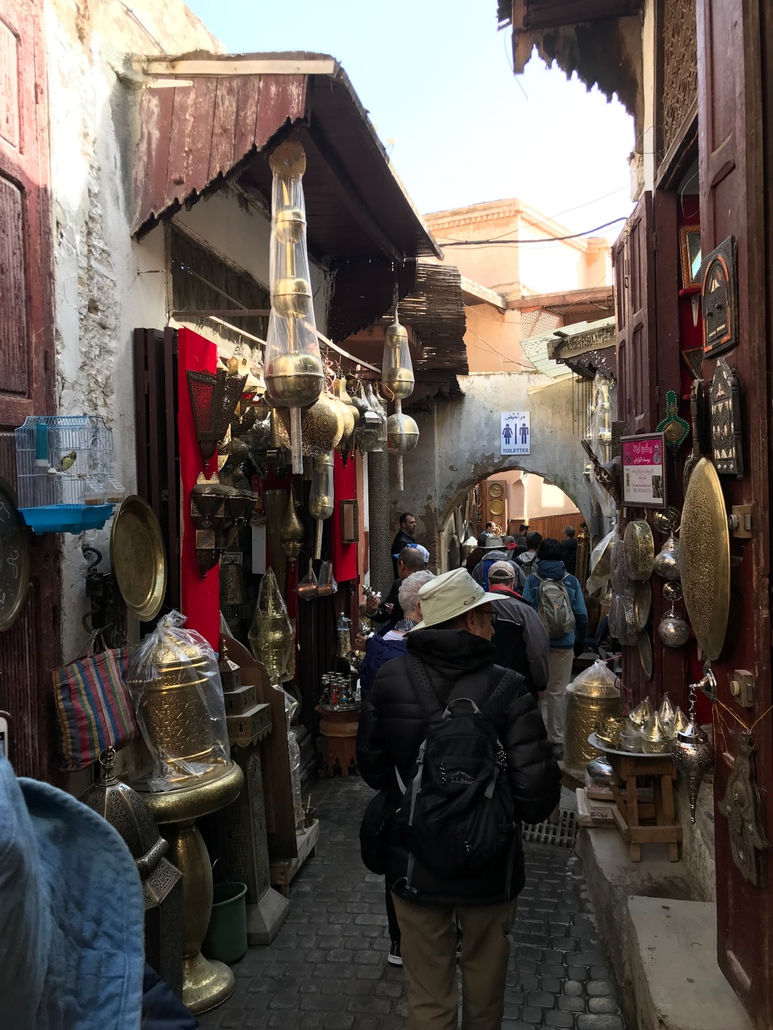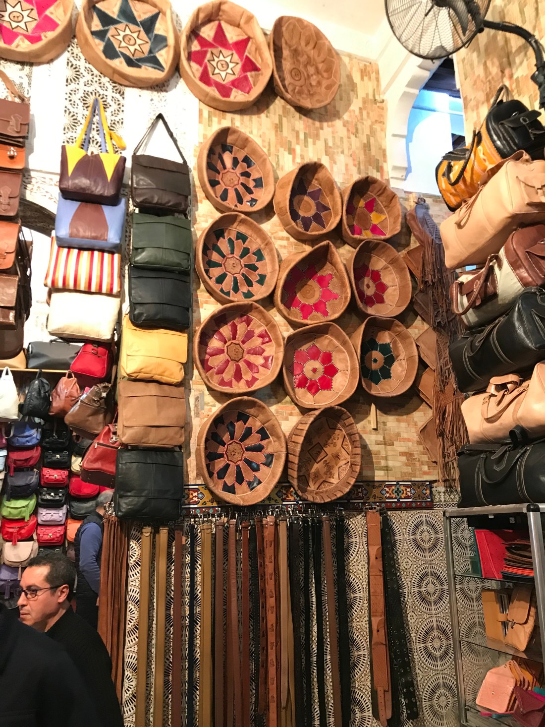 We enjoyed walking thru the worlds largest Medina(old walled city). It has lots of shops for locals and a few for tourists. No motorized vehicles are allowed in the Medina. It has over 11,000 streets. Some narrow enough we had to turn sideways, and some we had to duck. The leather tannery and old weaving shop were fascinating. Look closely at the market pictures…. yes, that is a camel’s head hanging outside of the meat market. It’s apparently a delicacy for the locals!