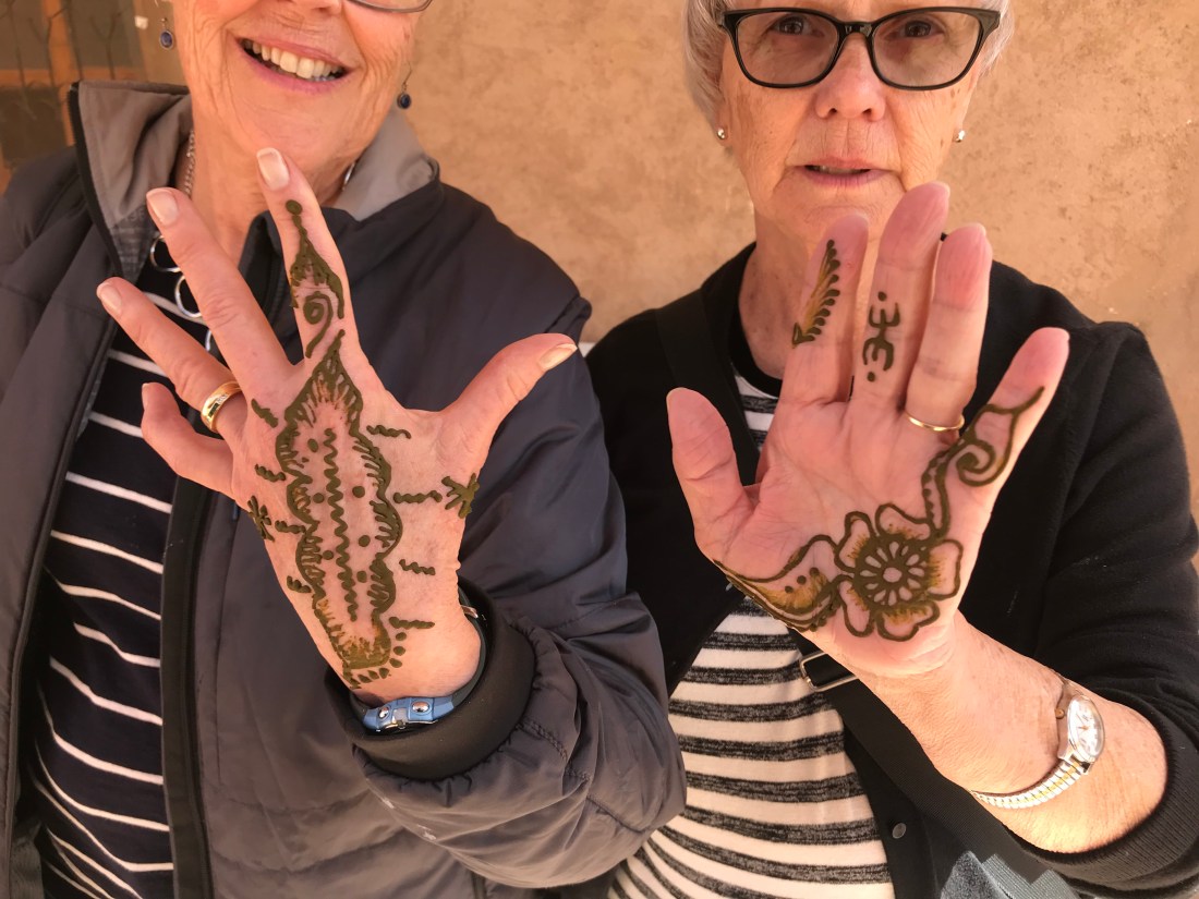 We stopped in the little town of Alt Benhaddou. It’s just west of Ouarzazate on the way to Marrakesh. We got to see and participate in many of their daily activities. Rod got to make a brick out of mud and straw and we learned how couscous is made and how to properly eat the traditional meal of lamb with vegetables cooked in a tangine. Patty and a few others got the Hennas (temporary tattoos). The people in this town are innovative, hard working, and seemed very happy.