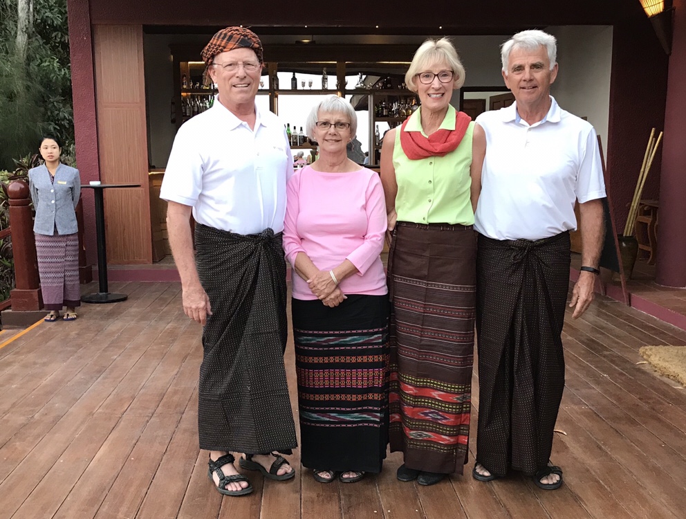 This trip provided us with a greater understanding of Laos and Myanmar, their people and their country. dressing native for our farewell dinnerwomen on the tripmen on the tripRoger and Rod …. wearing the longyi in the athletic style, getting ready for active dancing. Also worn this way to play soccer!