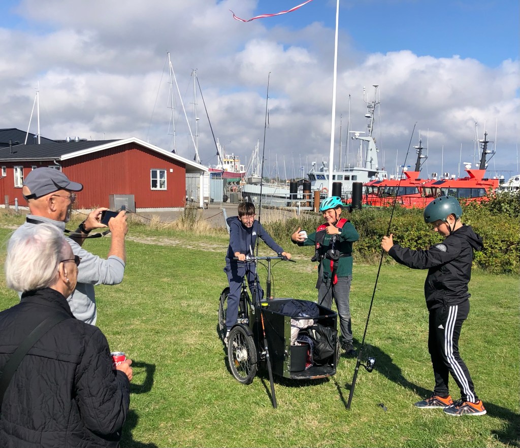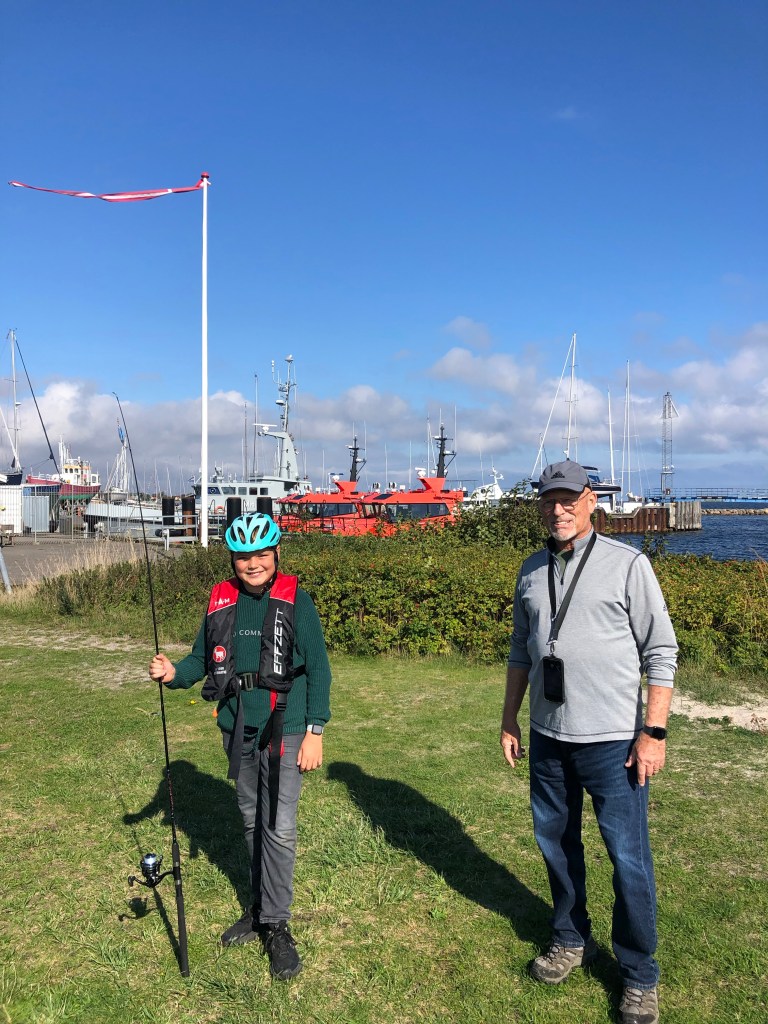 Boat number 571, the “Elisabeth”, the last surviving of the small fishing boats used to evacuate 700 Jews to Sweden to keep them from being captured by the Nazis in 1943 as the Nazis marched thru Denmark.I talked to these three boys because they were getting fishing poles ready for action. They are 11 years old, in the fifth grade and told us about the fish they were trying to catch and showed us pics on their phones of big fish they had caught. They also told us about a famous badminton player that came from their town. This boys name is Axel, same as our grandson and about the same age!
