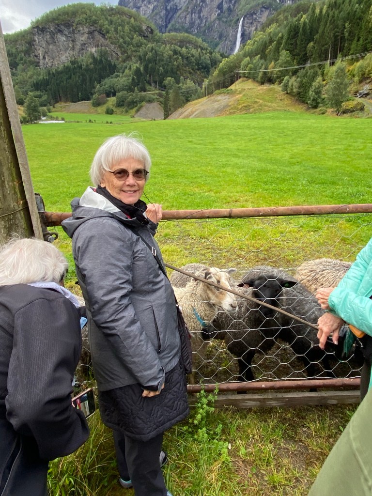 We visited a 5th generation family that raises sheep and quail. They don’t like cruise ship visits because of pollution and the visitors don’t spend any money. The cruise ships can dump “gray” waste water in the fjord. The family thinks that is one cause for the decline in the salmon population.