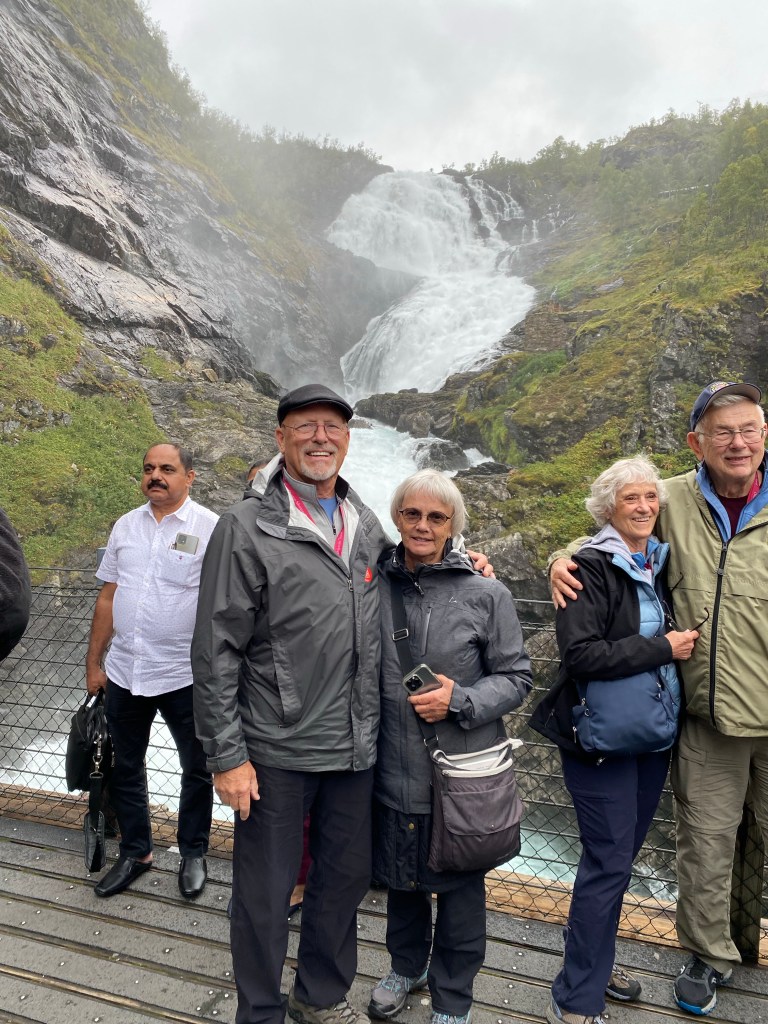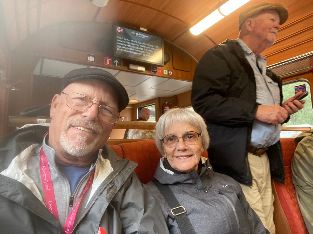 You must be self sufficient in this remote village. The owner has a sawmill, mills his own lumber, and is building two guest houses to use as an air B and B. They like the small group tourists that spend money in the restaurants, shops, and hotel.Beautiful river borders this farm. This young man, Odd, and his family have made a full time living since the late 1990’s raising pigs and sheep. They do everything on the farm with the animals. They butcher, package, distribute, and even have a large smoke house. They chose this life, not for the money but for the lifestyle. Odd is concerned with over tourism and is passionate about the fish farm controversy in Norway. He thinks the fish farming has caused the decline in wild salmon numbers….. more on that subject laterOn the old train from Flam to Bergen